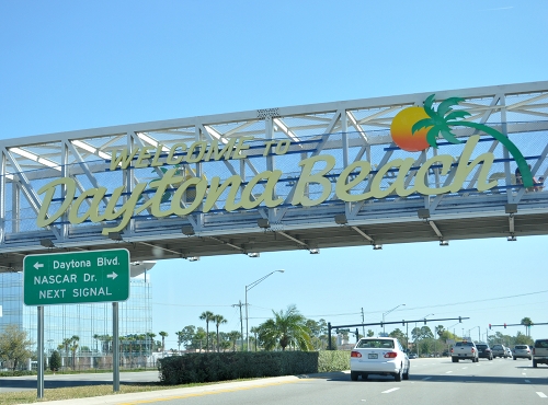 This spring break was exactly what I wanted and needed though. I got to hang out with my mom, snuggle my puppy, drive that powerhouse of a Miata on the beach, lay in the sun, wear sundresses and shorts and other hot weather things, drink tropical beverages, and sleep in a big comfy bed with palm trees outside my window. We decided (after a little work convincing my mom) to go to Daytona Beach on Saturday right during the end of Bike Week 2013. Basically the beach version of the Sturgis motorbike rally, hundreds of thousands of bikers from all over the country bring their bikes down to Daytona for a week of motorbike based festivities. They have bike races at the speedway, a "Hot Leathers" bike-wear fashion show, Hooters bikini contests, parades, music, etc. The bikers had taken over Daytona, and we joined in the fun! Let me tell you, there is no better place for a girl to get a boost of confidence that around a bunch of bikers.